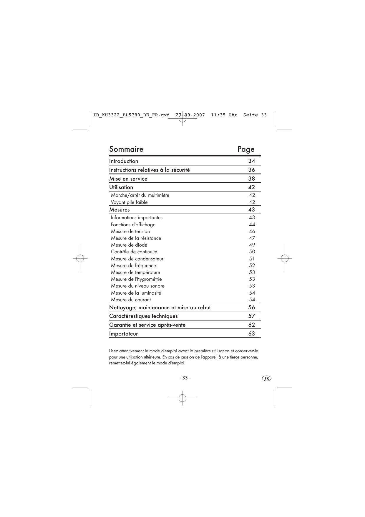 KH 3322 - Multimètre POWERFIX - Notice d'utilisation et mode d'emploi gratuit