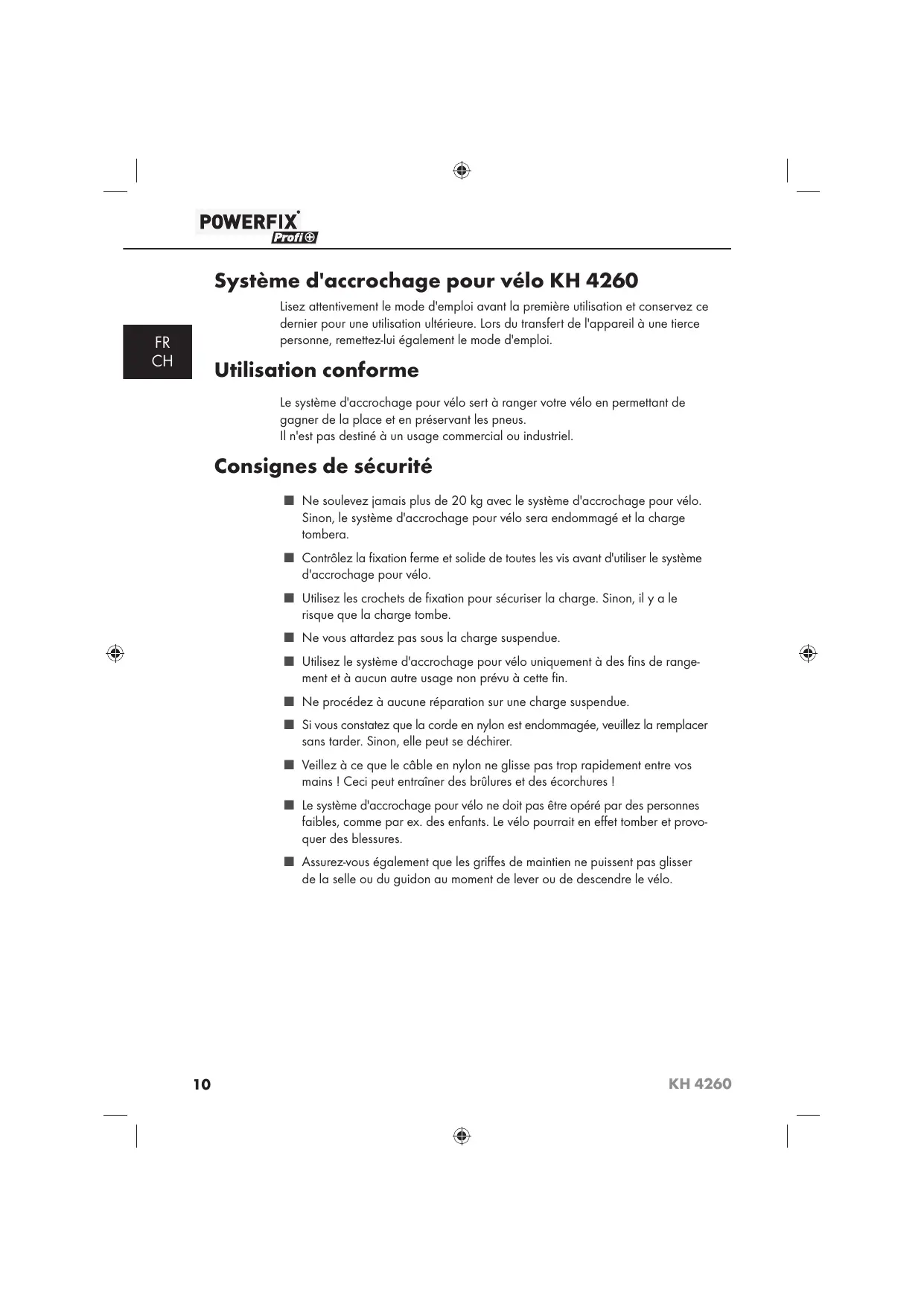 Retrouvez gratuitement la notice de l'appareil KH 4260 BICYCLE HOIST POWERFIX au format PDF.