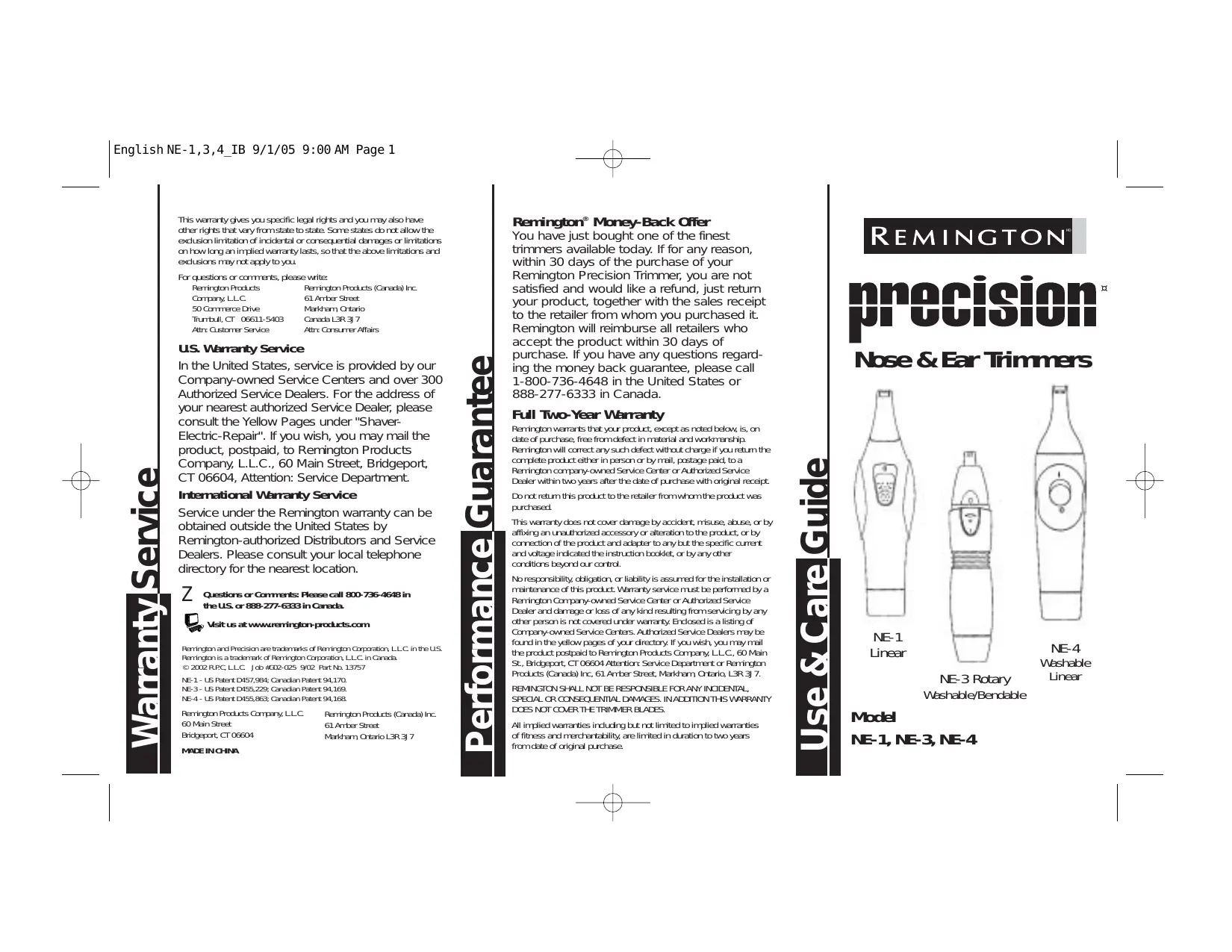 NE-1 - Notice d'utilisation et garantie REMINGTON - Notice d'utilisation et mode d'emploi gratuit