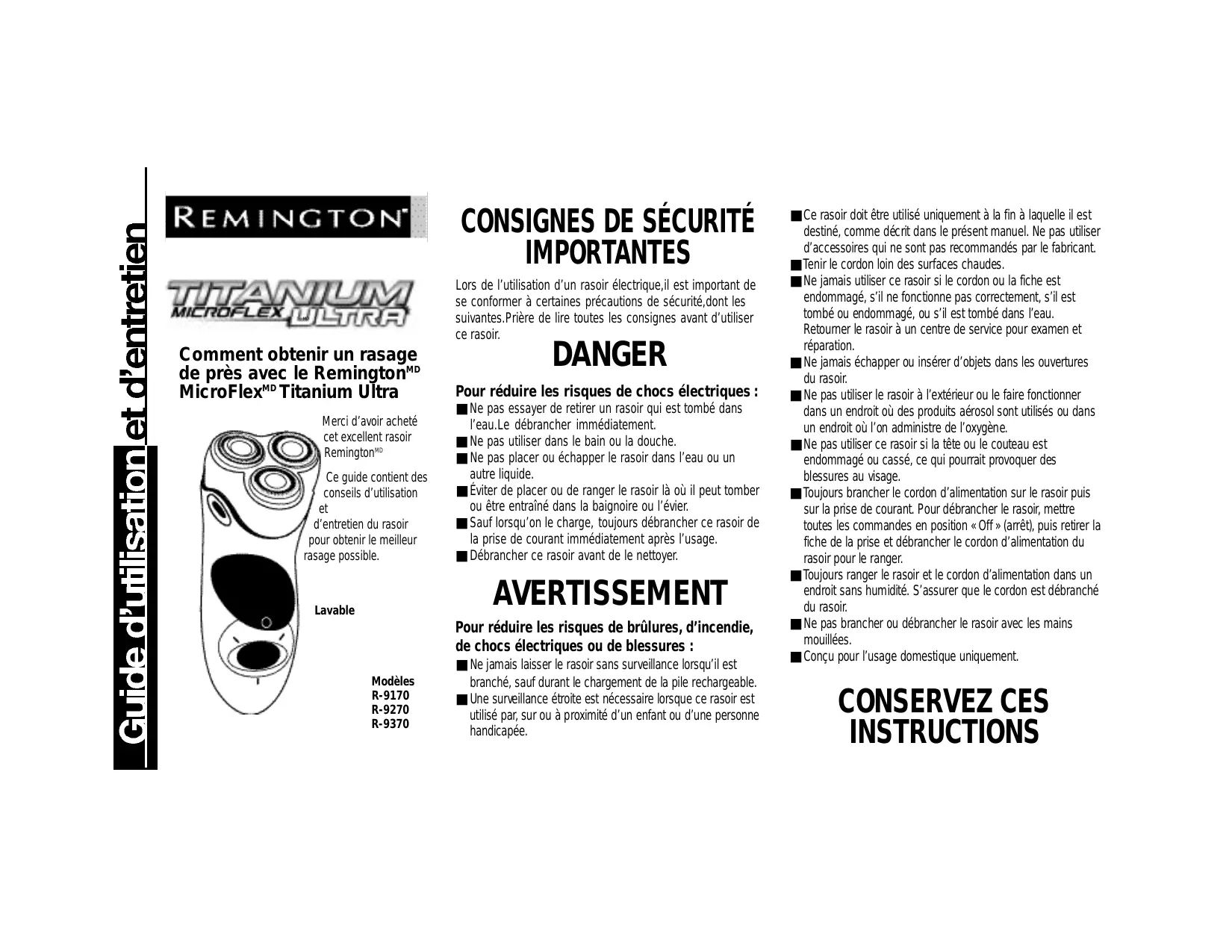 Retrouvez gratuitement la notice de l'appareil R-9370 REMINGTON au format PDF.