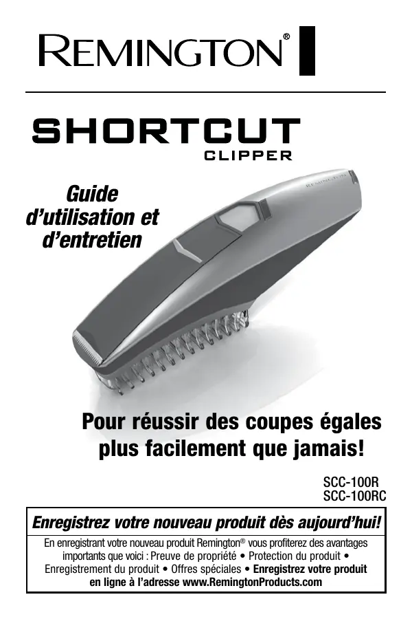 Félicitations d’avoir fait l’acquisition d’une des meilleures tondeuses à cheveux sur le marché. La tondeuse Shortcut Clipper de Remington® est conçue pour fonctionner parfaitement durant des années, vous permettant d’entretenir régulièrement une coupe courte.