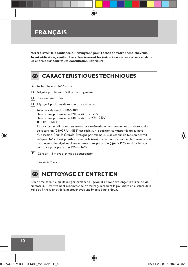 Retrouvez gratuitement la notice de l'appareil D2400 REMINGTON au format PDF.