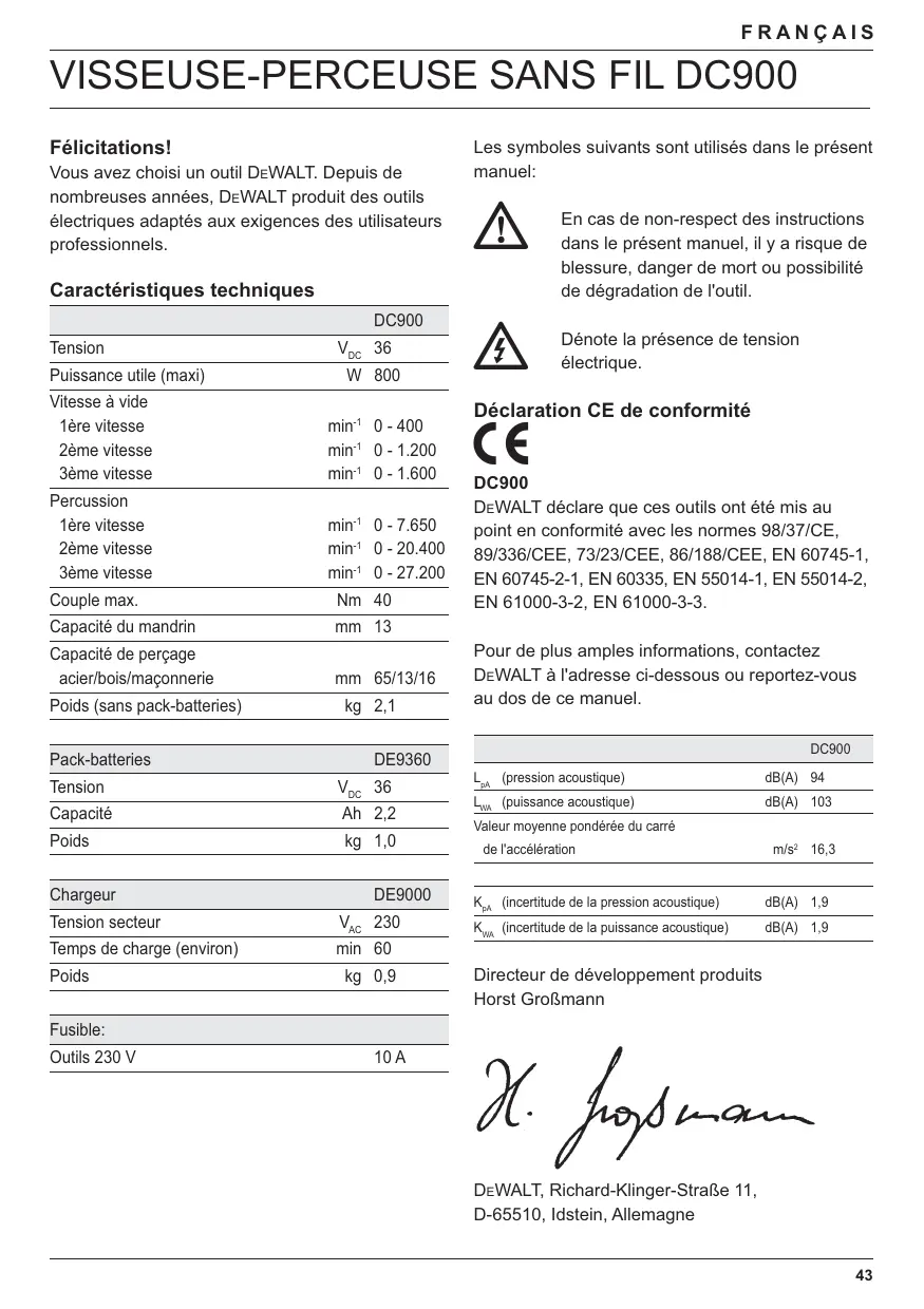 Retrouvez gratuitement la notice de l'appareil DC900KL DEWALT au format PDF.