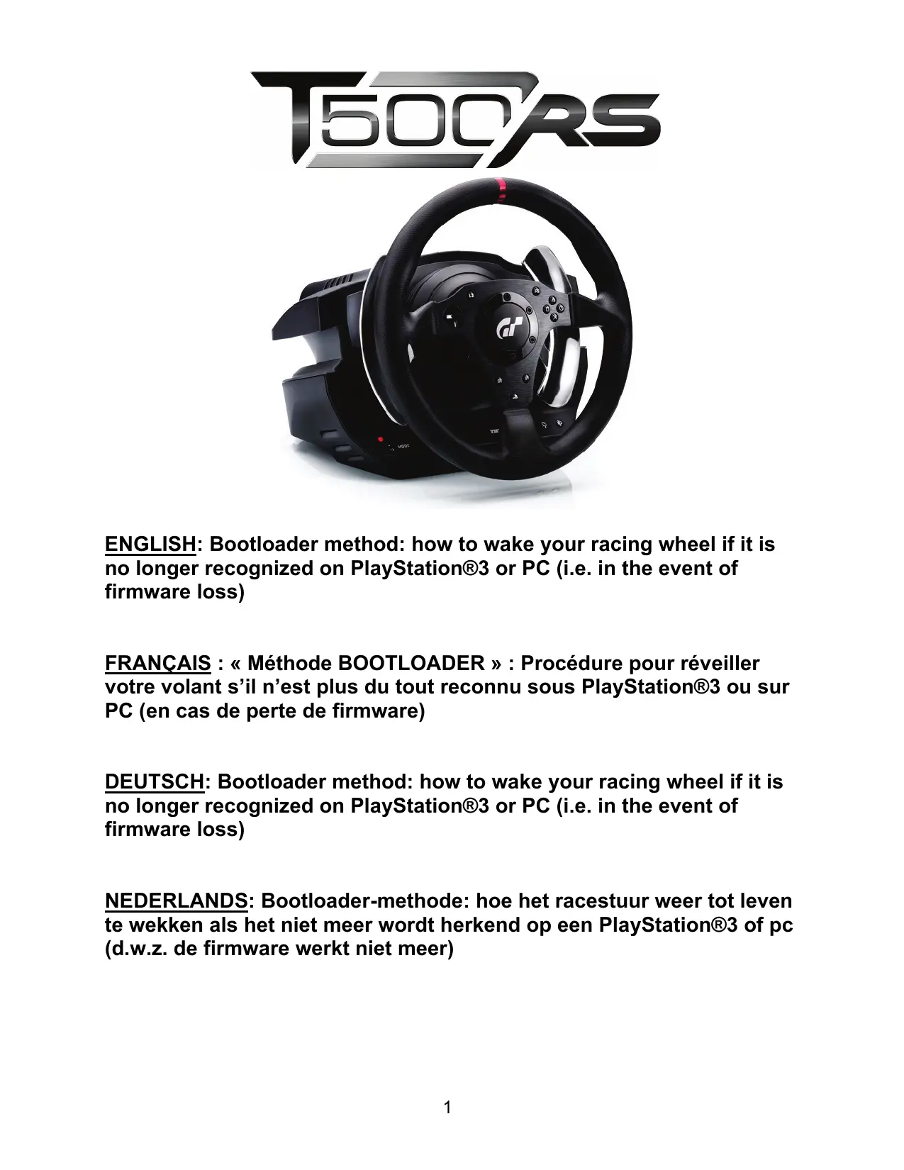 Retrouvez gratuitement la notice de l'appareil T500 RS THRUSTMASTER au format PDF.