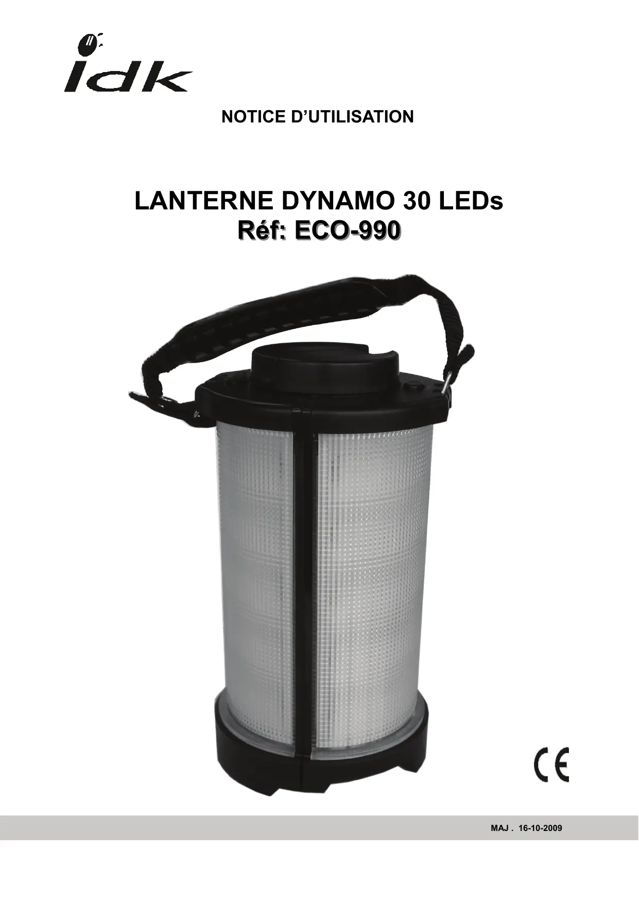IDK vous remercè d'avoir fait l'acquisition de la LANTERNE DYNAMO ECO-990 Lisez attentivement cette notice avant d'utiliser ce produit.