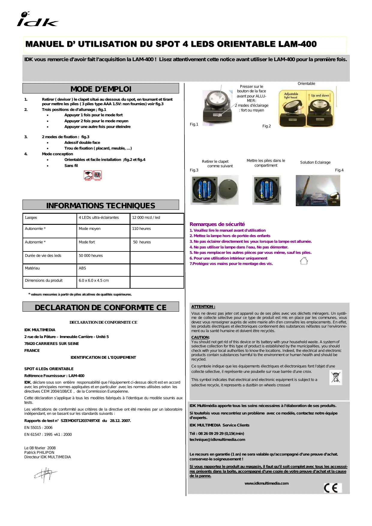 Téléchargez la notice de votre Spot lumineux au format PDF gratuitement ! Retrouvez votre notice LAM-400 - IDK MULTIMEDIA et reprennez votre appareil électronique en main. Sur cette page sont publiés tous les documents nécessaires à l'utilisation de votre appareil LAM-400 de la marque IDK MULTIMEDIA.