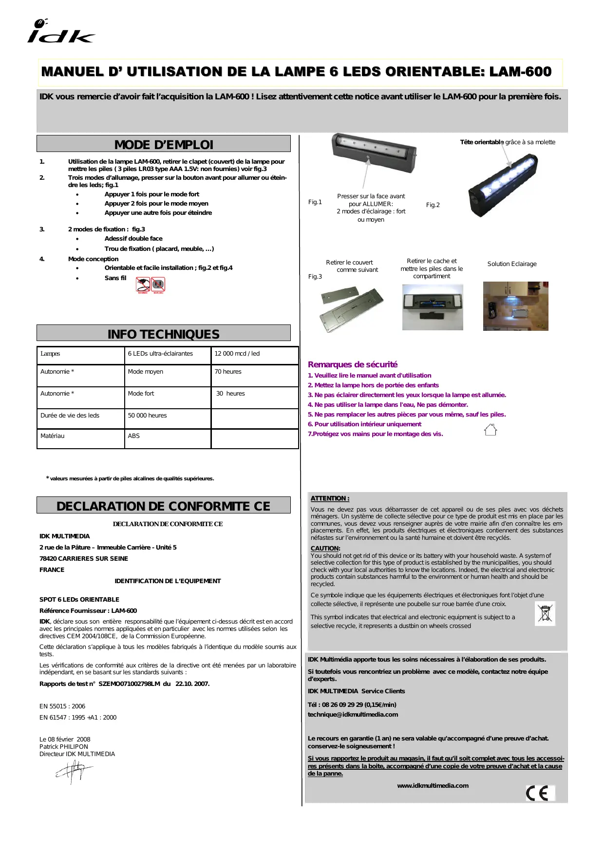 MODE D'EMPLOI LAM-600 IDK MULTIMEDIA