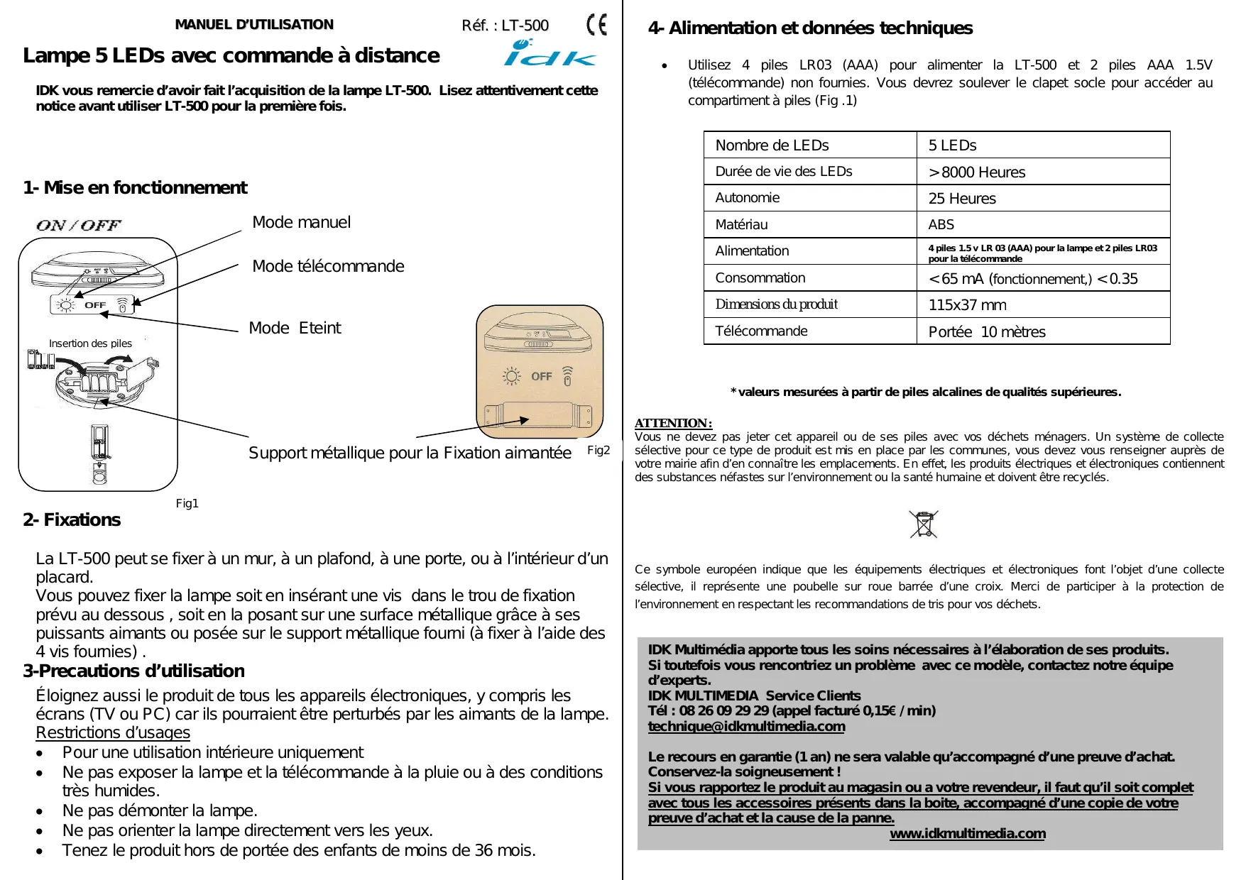 MODE D'EMPLOI LT-500 IDK MULTIMEDIA