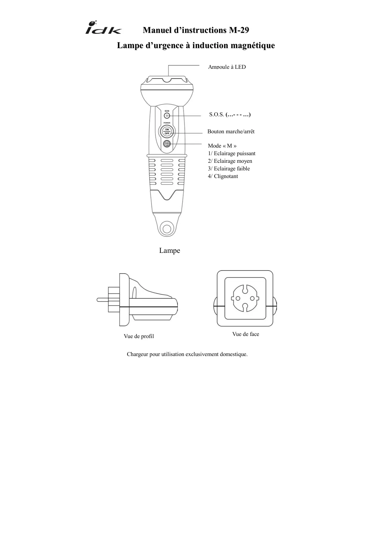 M-29 - Lampe de poche IDK MULTIMEDIA - Notice d'utilisation et mode d'emploi gratuit