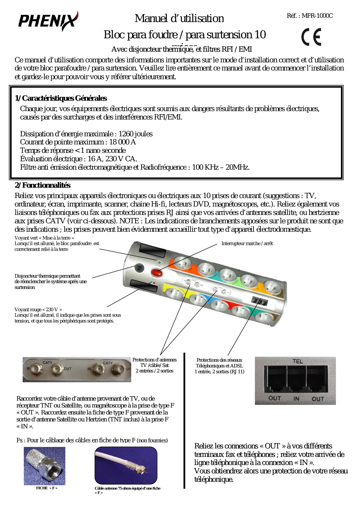 Ce manuel d'utilisation comporte des informations importantes sur le mode d'installation correct et d'utilisation de votre bloc parafoudre / para surtension. Veuillez tire entiement ce manuel avant de commencer l'installation et gardez-le pour pouvoir vous y reférer ultérieurement.