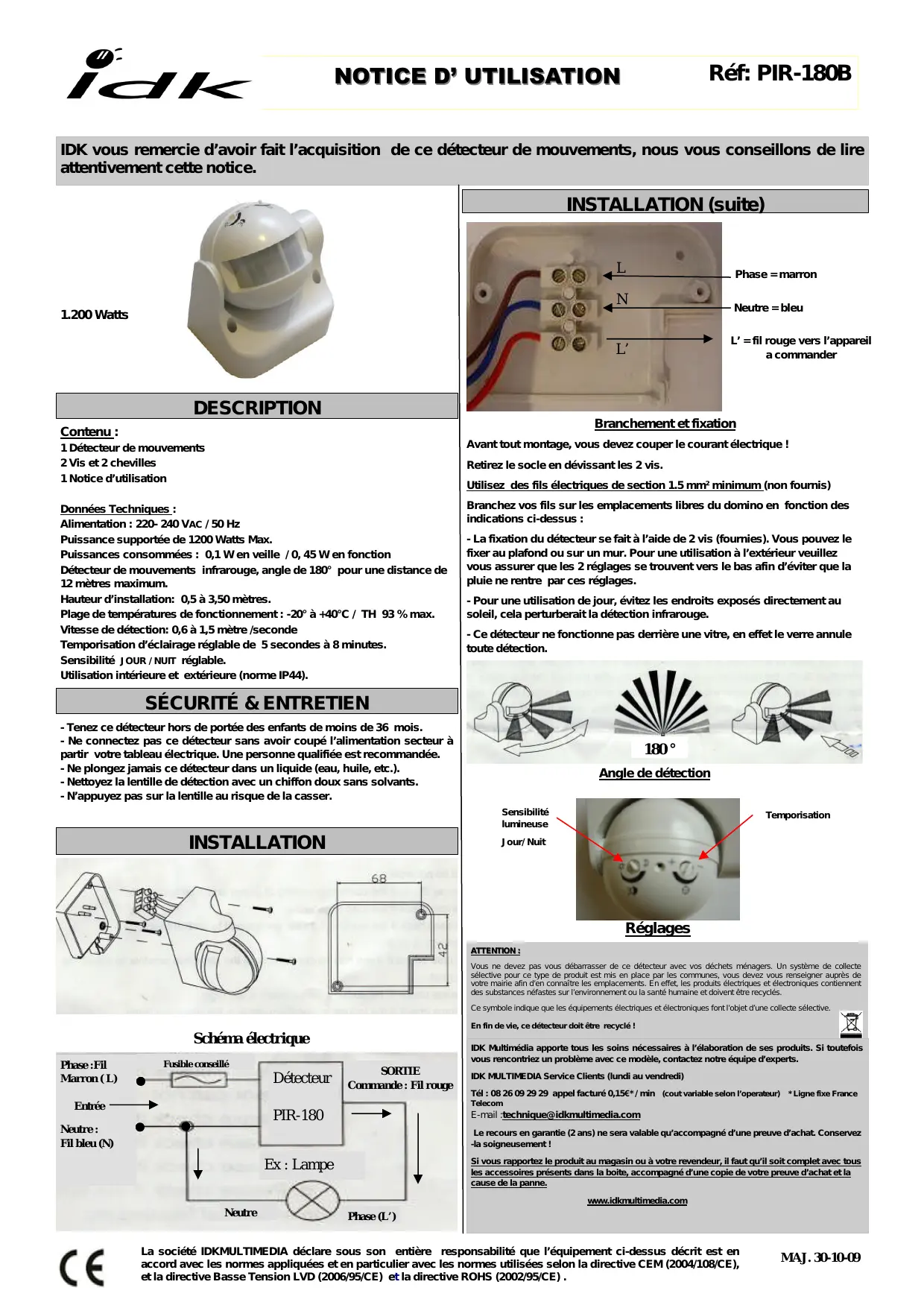 IDK vous remerciez d'avoir fait l'acquisition de ce détecteur de mouvements, nous vous conseillons de dire attentivement cette notice.