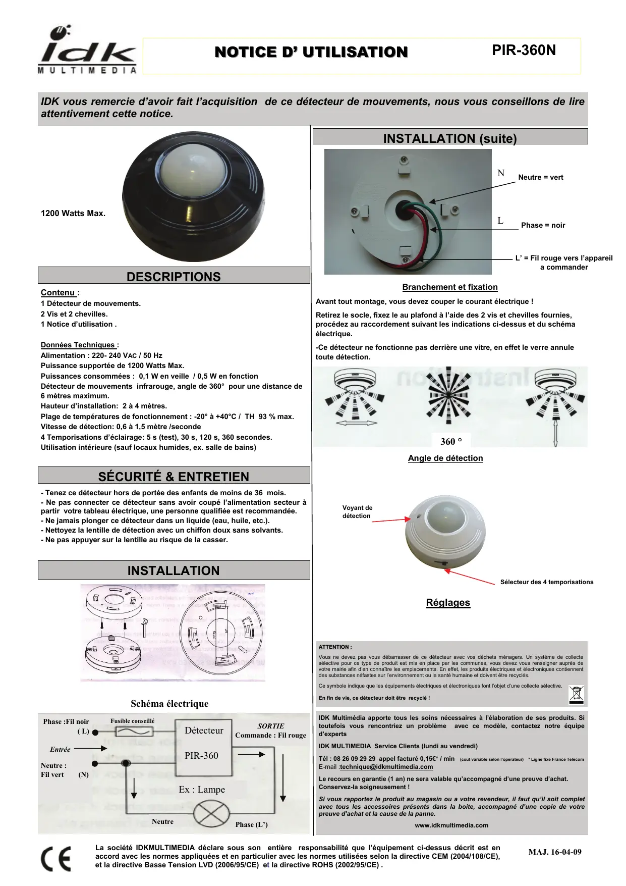 IDK you remercie d'avoir fait l'acquisition de ce détecteur de mouvements, nous vous conseillons de dire attentivement cette notice.