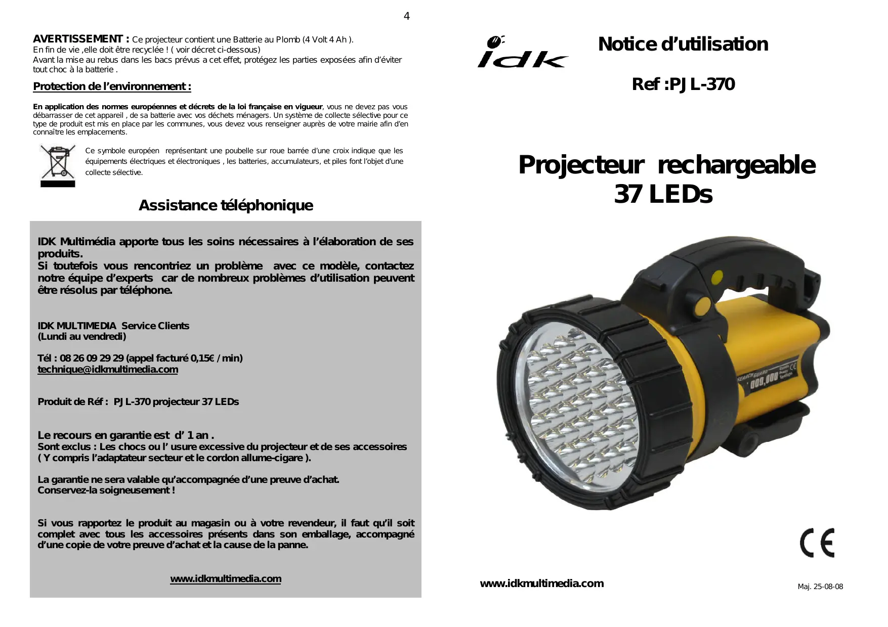 MODE D'EMPLOI PJL-370 IDK MULTIMEDIA