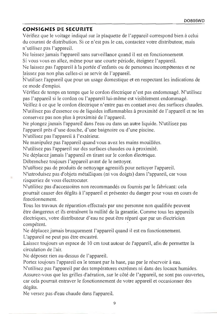 Retrouvez gratuitement la notice de l'appareil DO805WD DOMO au format PDF.