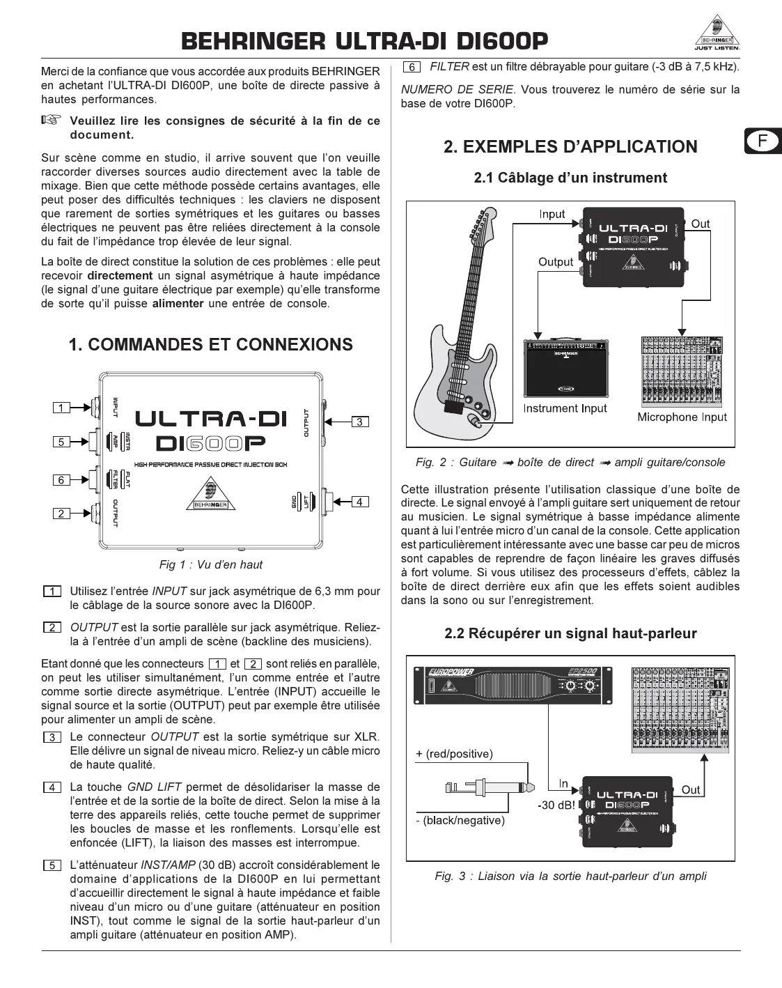 Retrouvez gratuitement la notice de l'appareil DI600P BEHRINGER au format PDF.