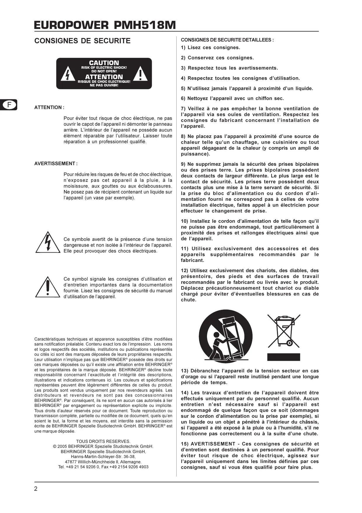 MODE D'EMPLOI PMH518M BEHRINGER