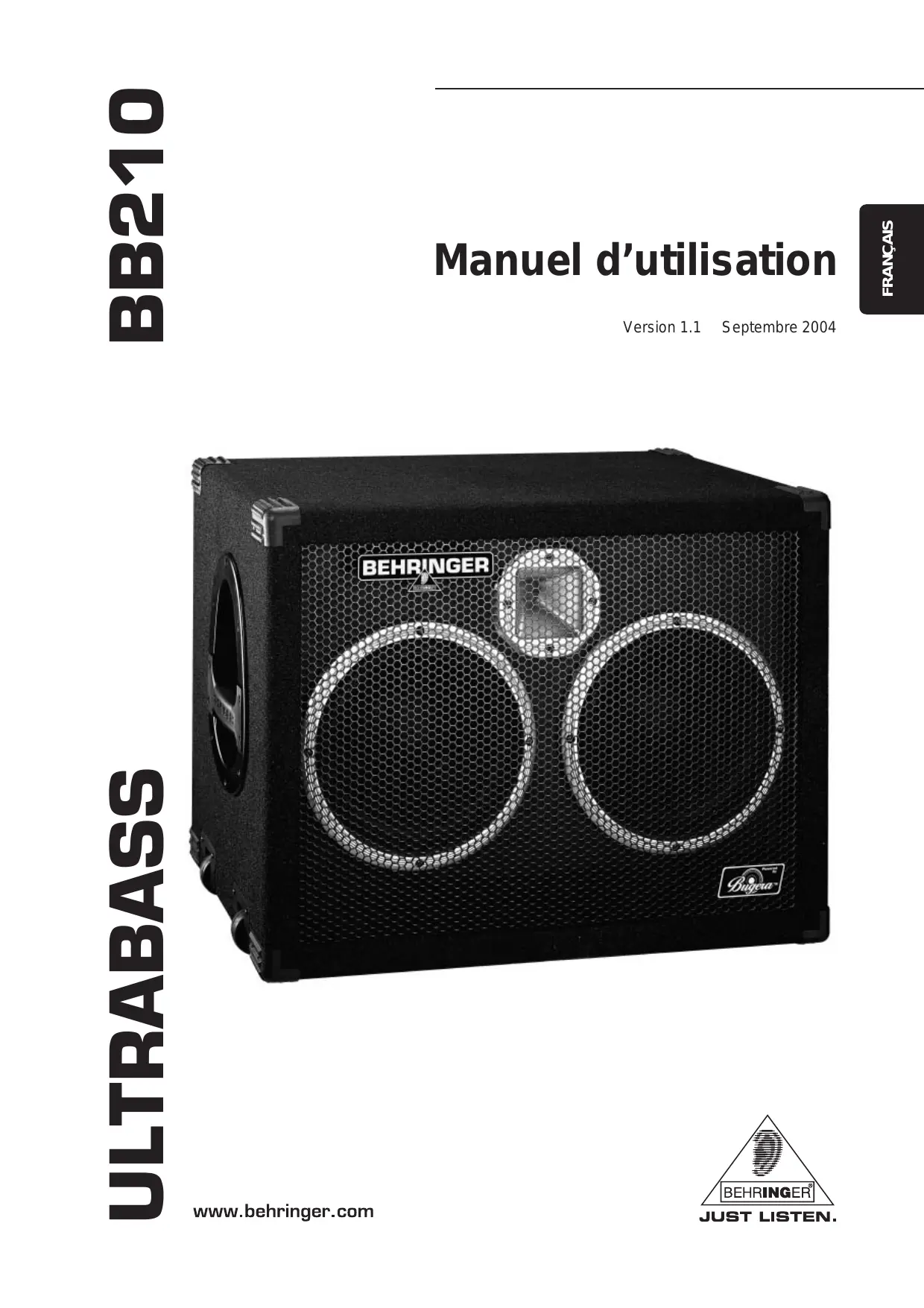 Félicitations et merci de la confiance que vous nous avons prouvée en achetant l'ULTRABASS BB210 BEHRINGER. Cét incroyable baffle pour basse à haut-parleurs BUGERATM à membrane en papier spécial est unconu spécialement pour la restitution des graves et infra-graves à des puissances extrêmes. Il délivre dessons de basse classiques gorgés de graves généreux et de médiums clairs.