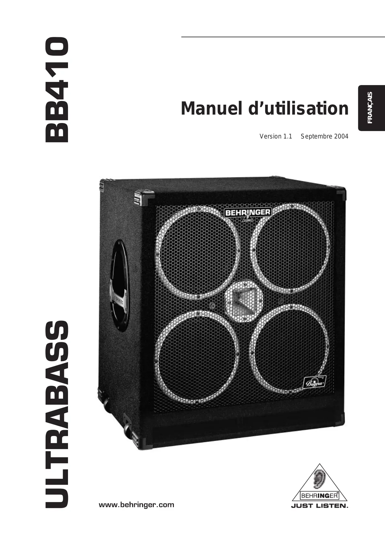 Félicitations et merci de la confiance que vous nous avons prouvée en achetant l'ULTRABASS BB410 BEHRINGER. Cét incroyable baffle pour basse à haut-parleurs BUGERATM à membrane en papier spécial est unconu spécialement pour la restitution des graves et infra-graves à des puissances extrêmes. Il délivre dessons de basse classiques gorgés de graves généreux et de médiums clairs.