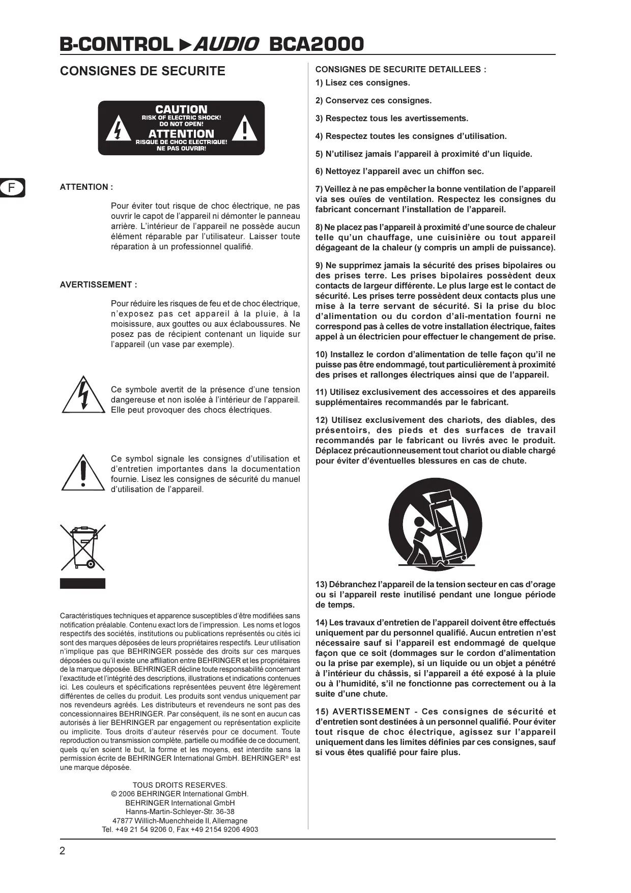 Retrouvez gratuitement la notice de l'appareil BCA2000 BEHRINGER au format PDF.