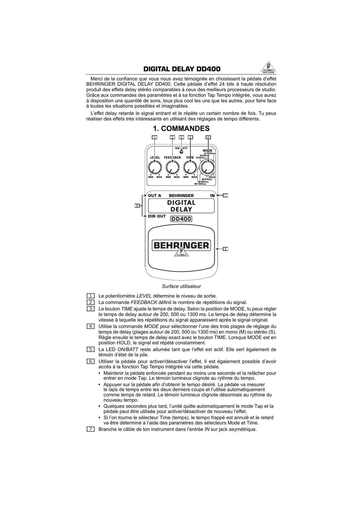 MODE D'EMPLOI DD400 BEHRINGER