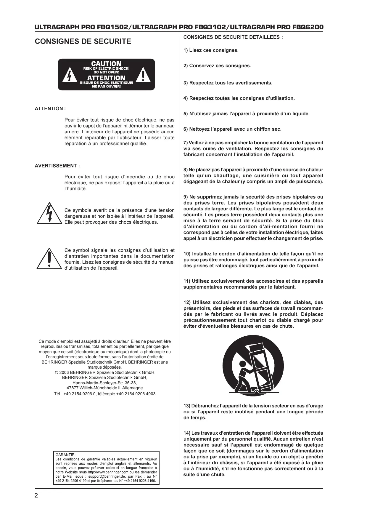 Retrouvez gratuitement la notice de l'appareil FBQ6200 BEHRINGER au format PDF.