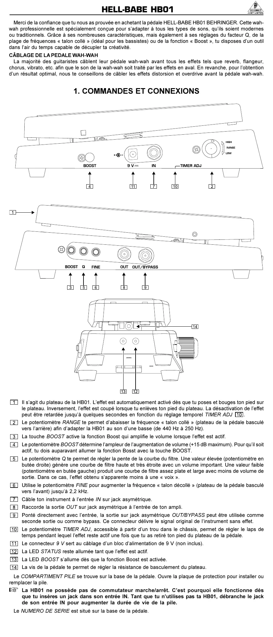 MODE D'EMPLOI HB01 BEHRINGER