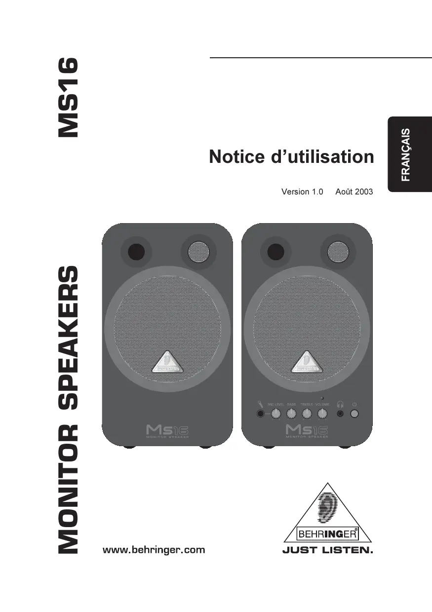 MONITOR SPEAKERS Version 1.0 Août 2003 FRANÇAIS MS16 Notice dutilisation