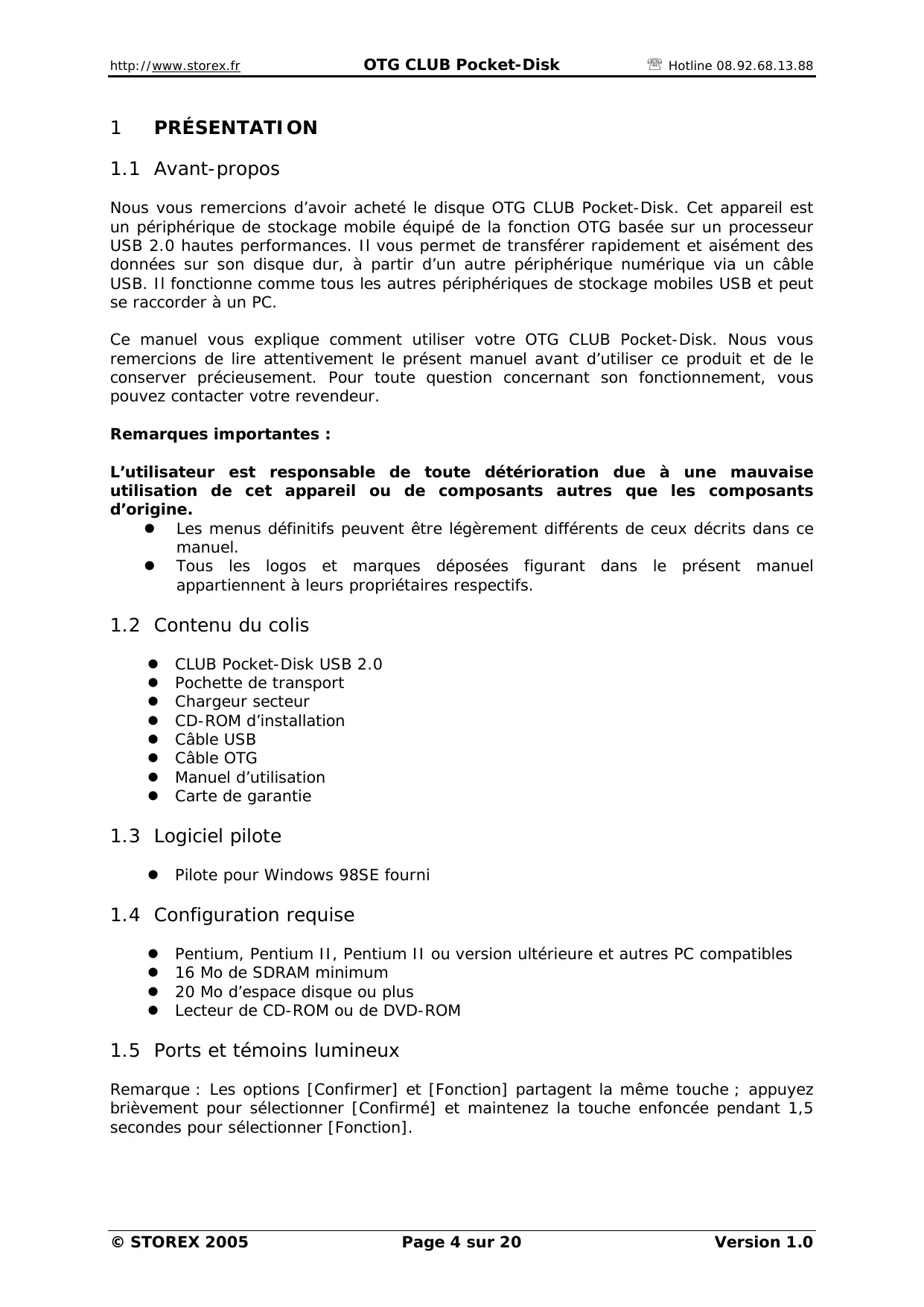 MODE D'EMPLOI OTG CLUB POCKET-DISK CL2510TG STOREX