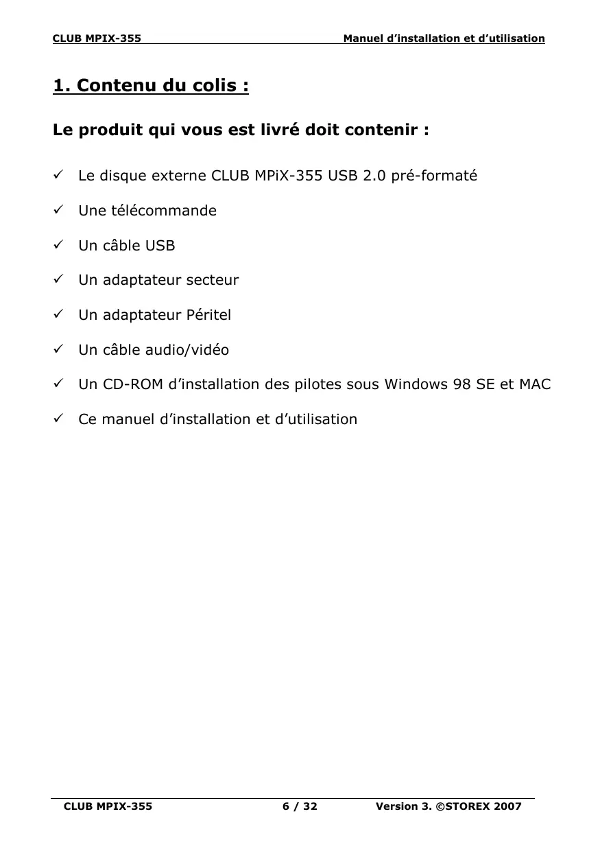Si vous disposez d’un accès Internet, nous vous invitons à consulter notre site www.storex.eu afin de rechercher d’éventuelles modifications à ce manuel ou de nouveaux pilotes de périphérique pour CLUB MPiX.