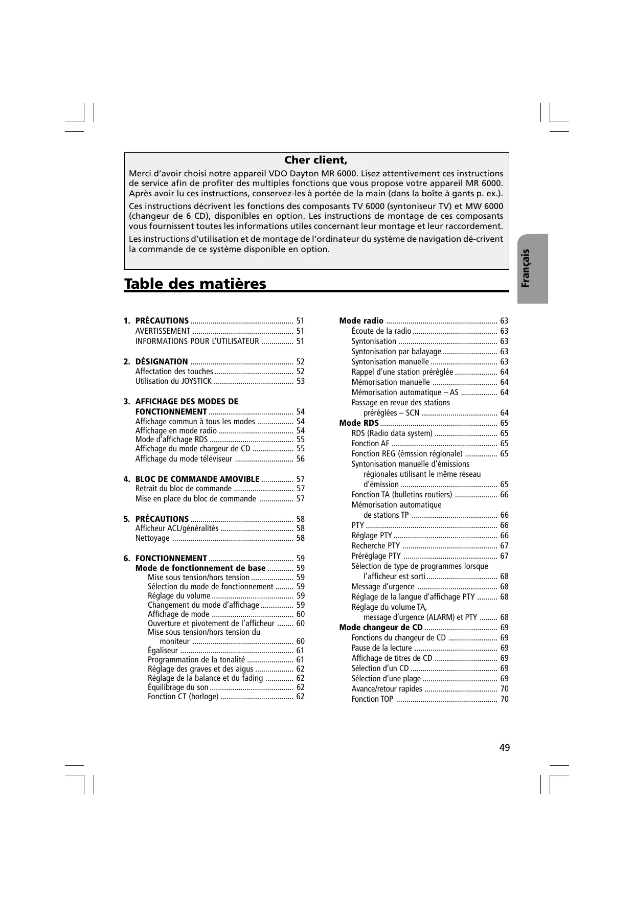 MODE D'EMPLOI MR6000 VDO DAYTON