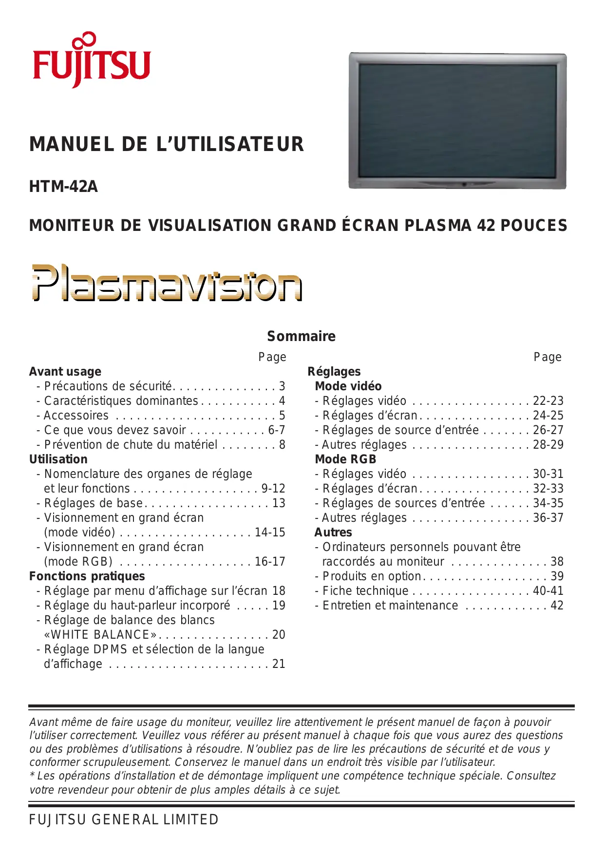 HTM-42A - Téléviseur FUJITSU - Notice d'utilisation et mode d'emploi gratuit