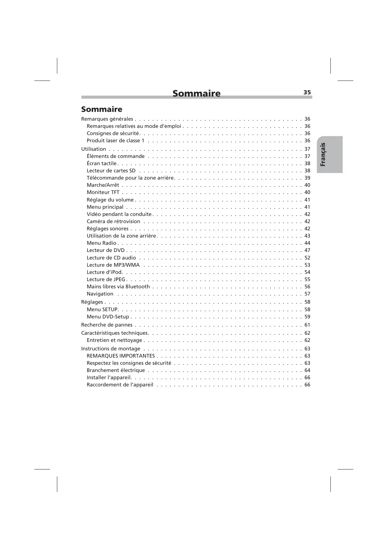 Consignes de sécurité. 36