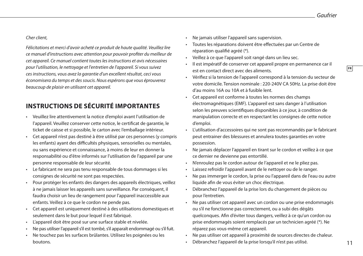 | Fonctions principales | Préparation de gaufres croustillantes et dorées |
