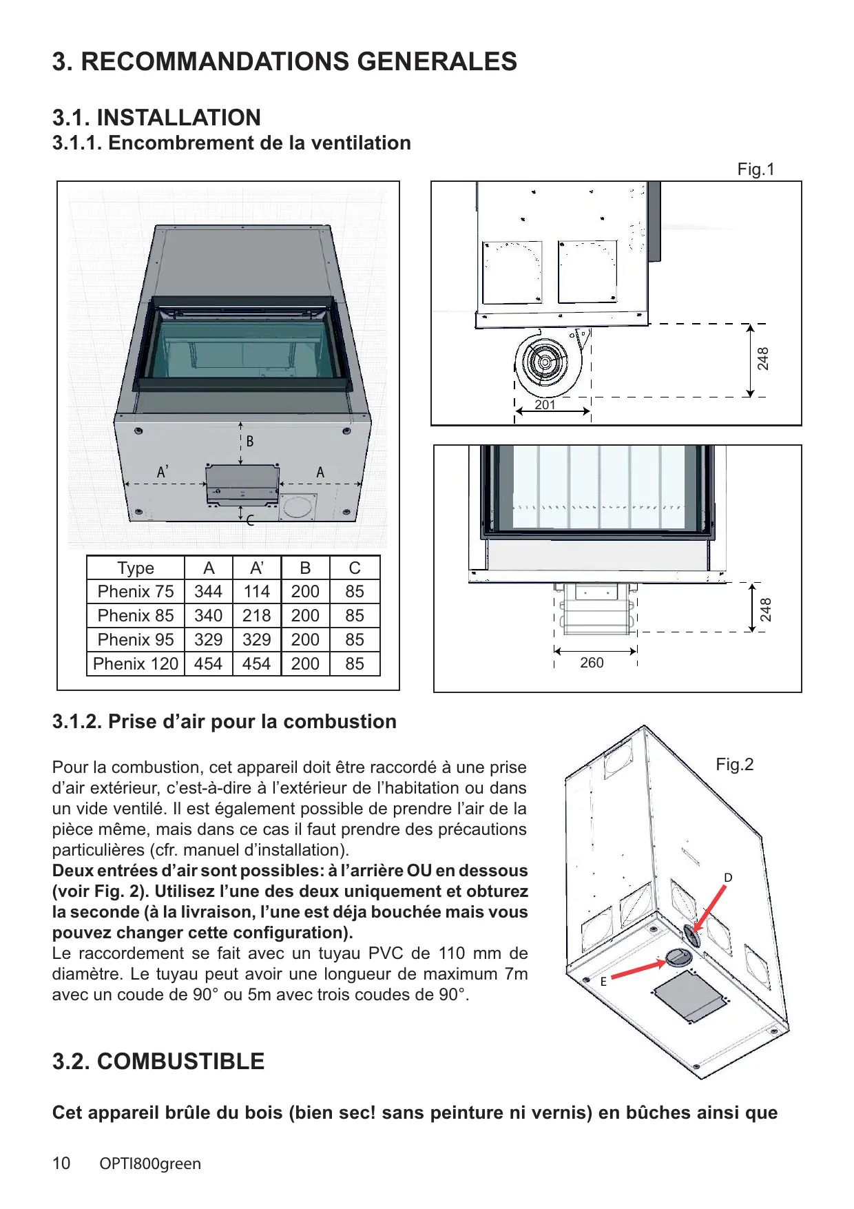 APPAREIL TYPE: PHENIX green, modèles 75, 85, 95 et 120