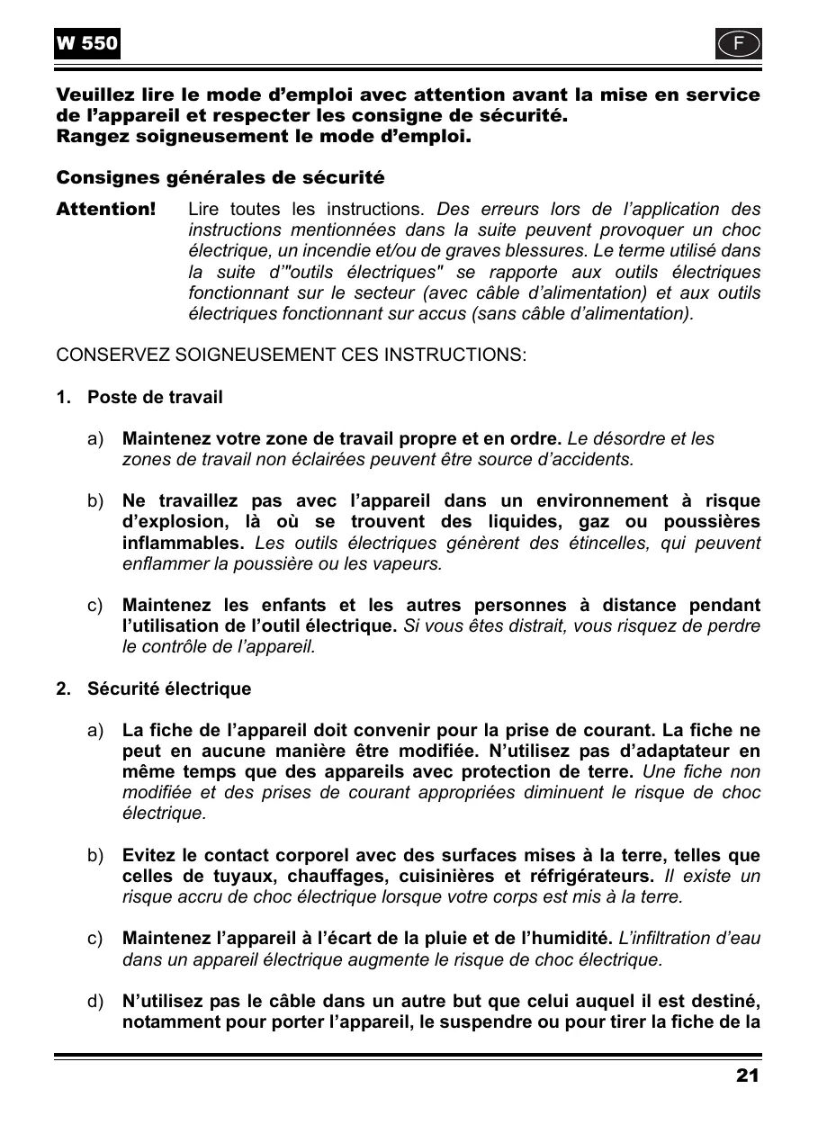 MODE D'EMPLOI W 550 WAGNER