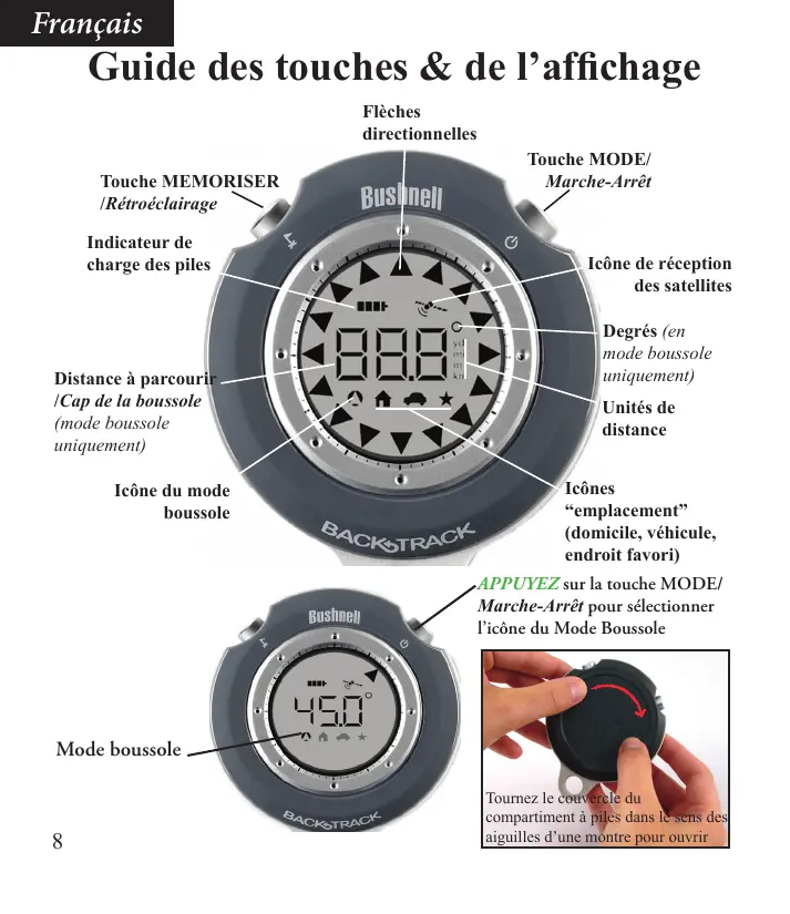 3. Pour utiliser le Backtrack comme une boussole digitale, APPUYEZ sur la touche MODE/