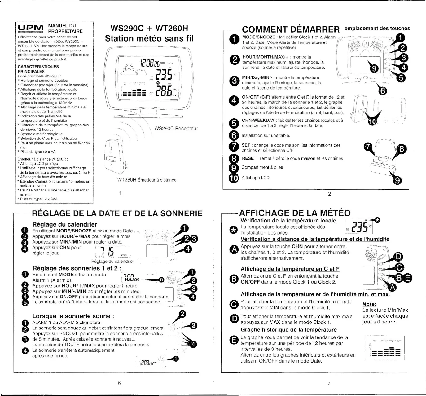 Téléchargez la notice de votre Station Météo au format PDF gratuitement ! Retrouvez votre notice WS290C - UPM et reprennez votre appareil électronique en main. Sur cette page sont publiés tous les documents nécessaires à l'utilisation de votre appareil WS290C de la marque UPM.
