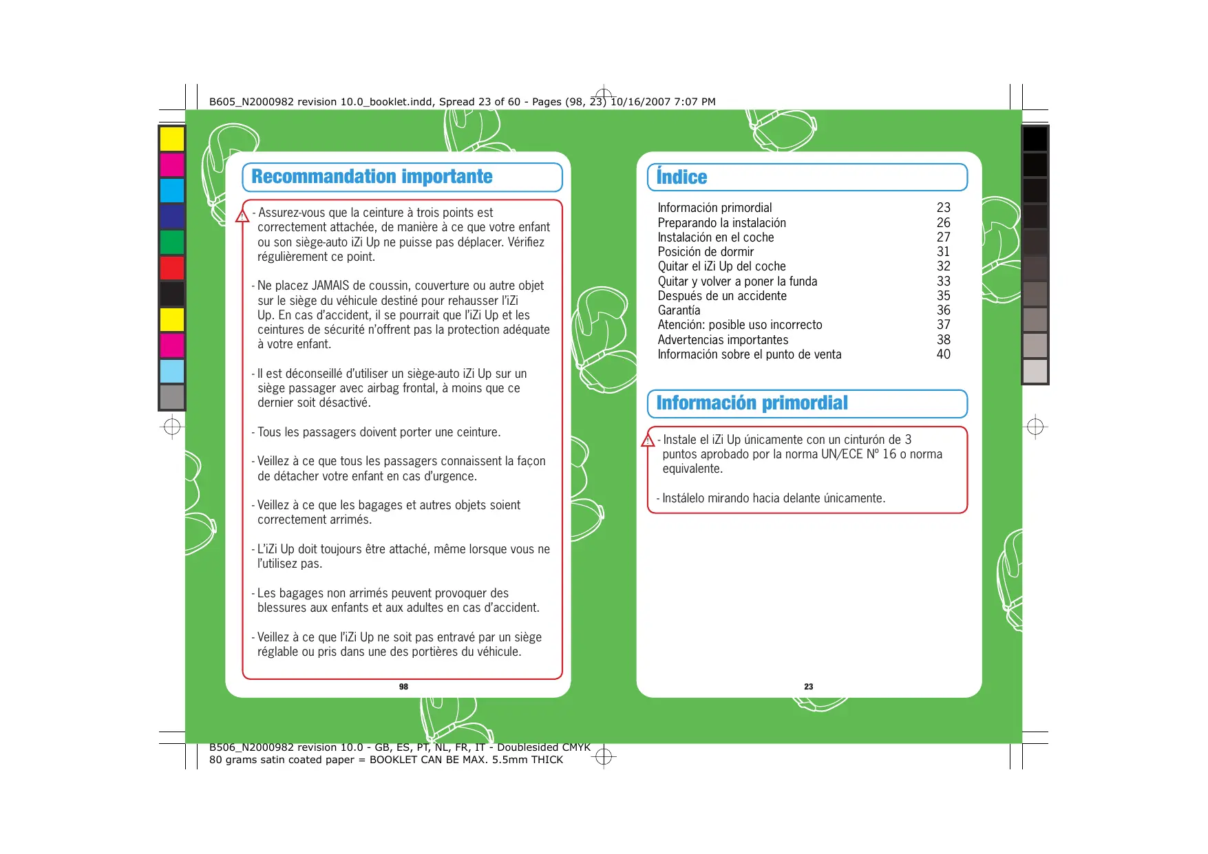- N’installez l’iZi Up qu’avec une ceinture de sécurité à 3 points satisfaisant à la norme UN/ECE n°16 ou à des normes équivalentes.