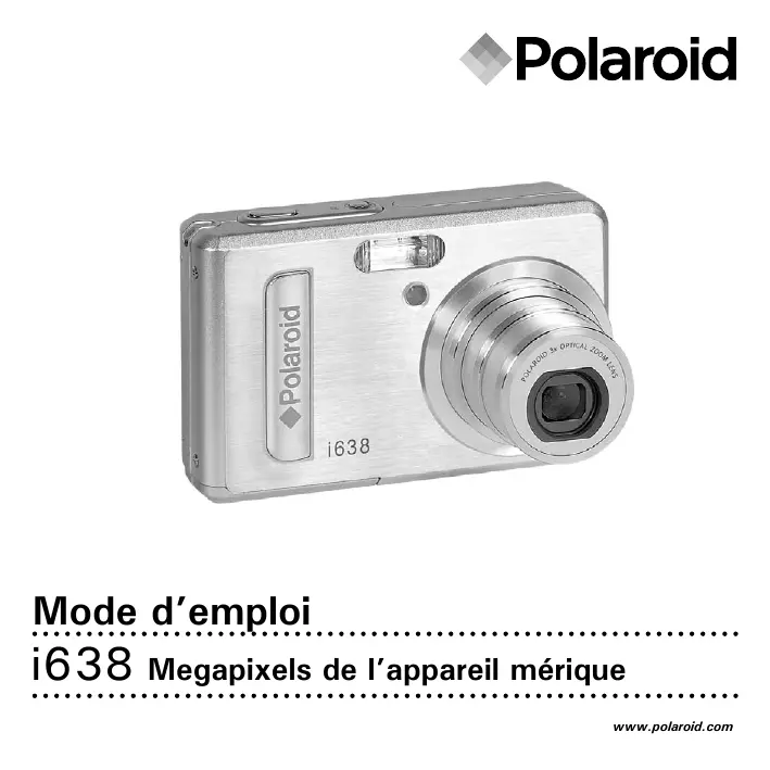 Polaroid Mode d’emploi de l’appareil numérique www.polaroid.com 1 Démarrage L’appareil photo numérique i638, le produit-phare de Polaroid, d’un écran LCD couleur 2.4 pouces et d’un hôte de commandes prédéfinies. Le i638 est l’appareil idéal des photographes en quête de simplicité et de performances. Cet appareil photo propose :