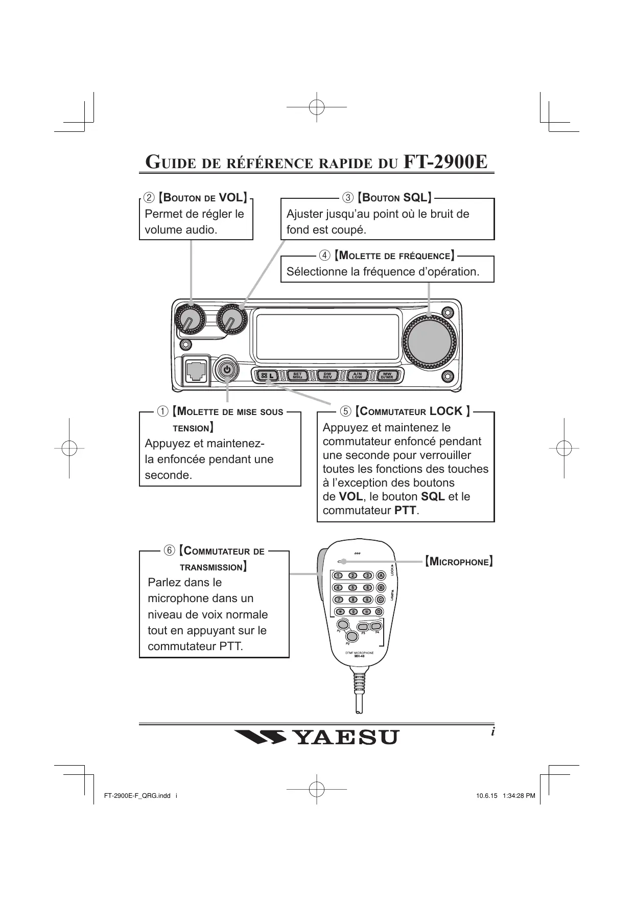 10.6.15 2:05:28 PM GUIDE DE RÉFÉRENCE RAPIDE DU FT-2900E ②【BOUTON DE VOL】 Permet de régler le volume audio.