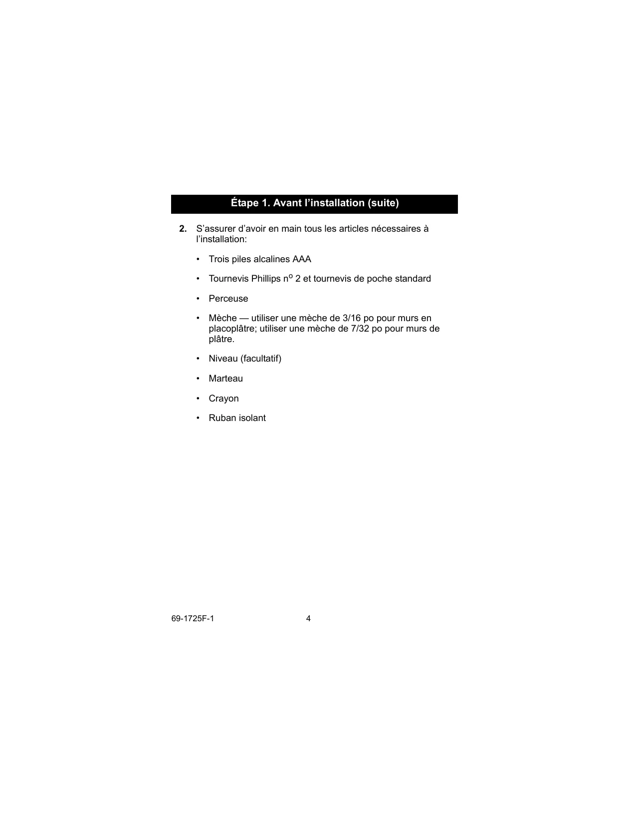 3/16 po si le mur est en placoplâtre, et des ouvertures de