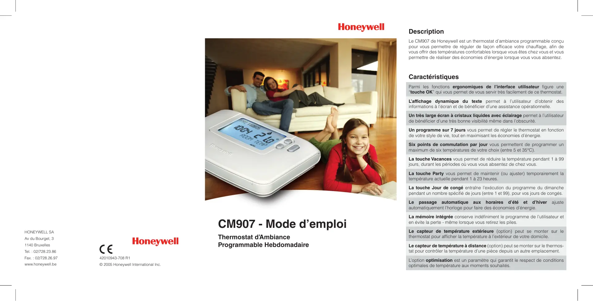 CM907 - Thermostat HONEYWELL - Notice d'utilisation et mode d'emploi gratuit