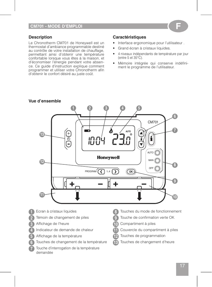 CM701 - Thermostat HONEYWELL - Notice d'utilisation et mode d'emploi gratuit