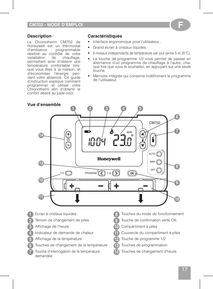 CM702 - Thermostat HONEYWELL - Notice d'utilisation et mode d'emploi gratuit