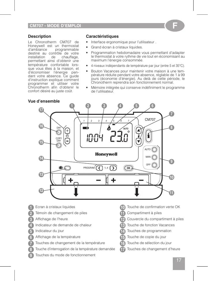 CM707 - Thermostat programmable HONEYWELL - Notice d'utilisation et mode d'emploi gratuit