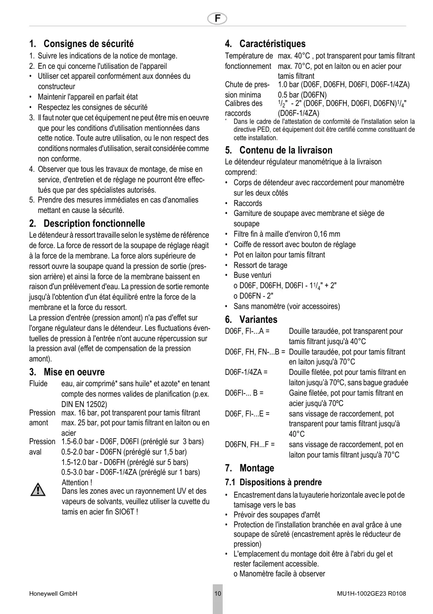 D06F-1-4ZA - HONEYWELL - Notice d'utilisation et mode d'emploi gratuit