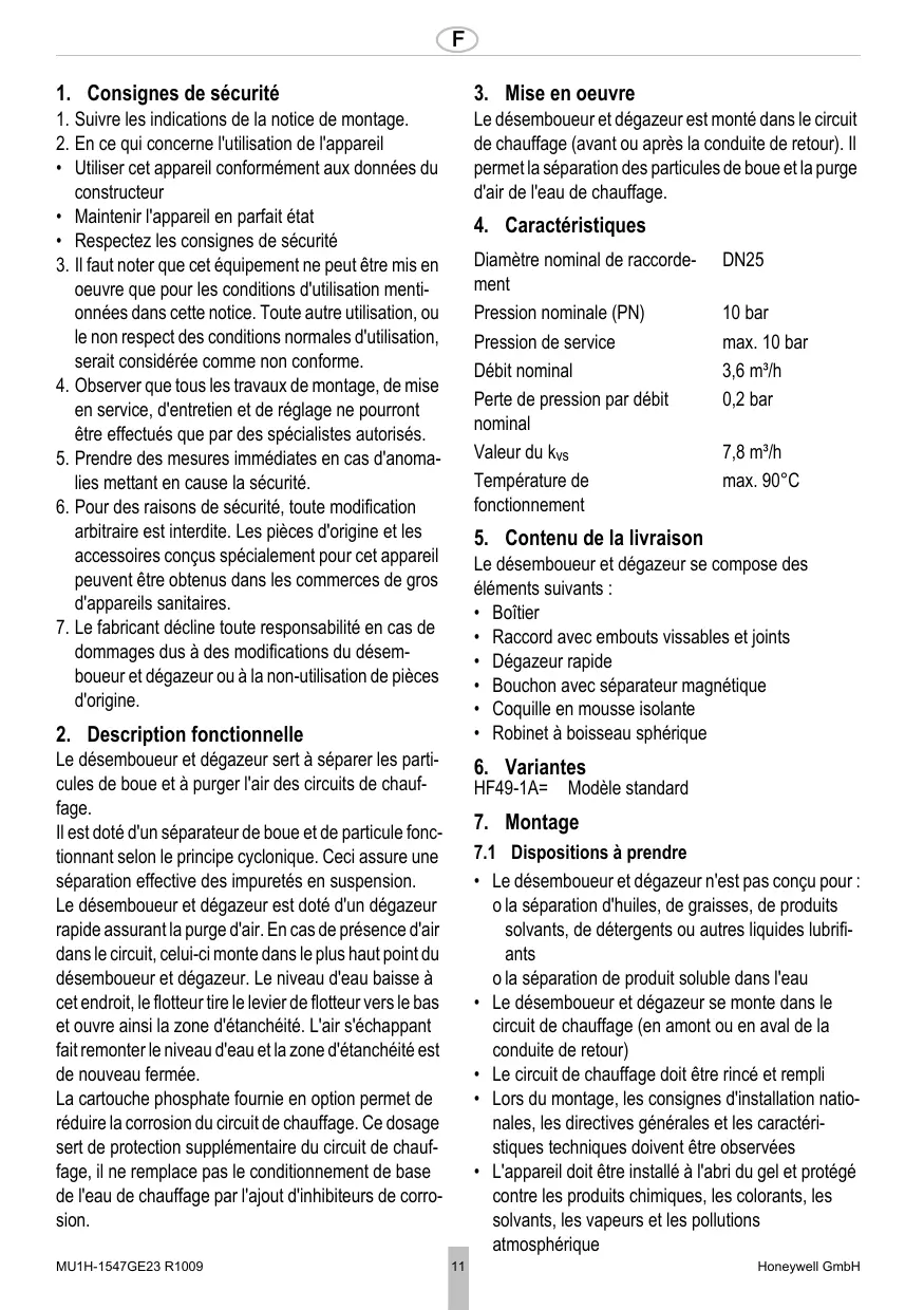 HF 49 - HONEYWELL - Notice d'utilisation et mode d'emploi gratuit