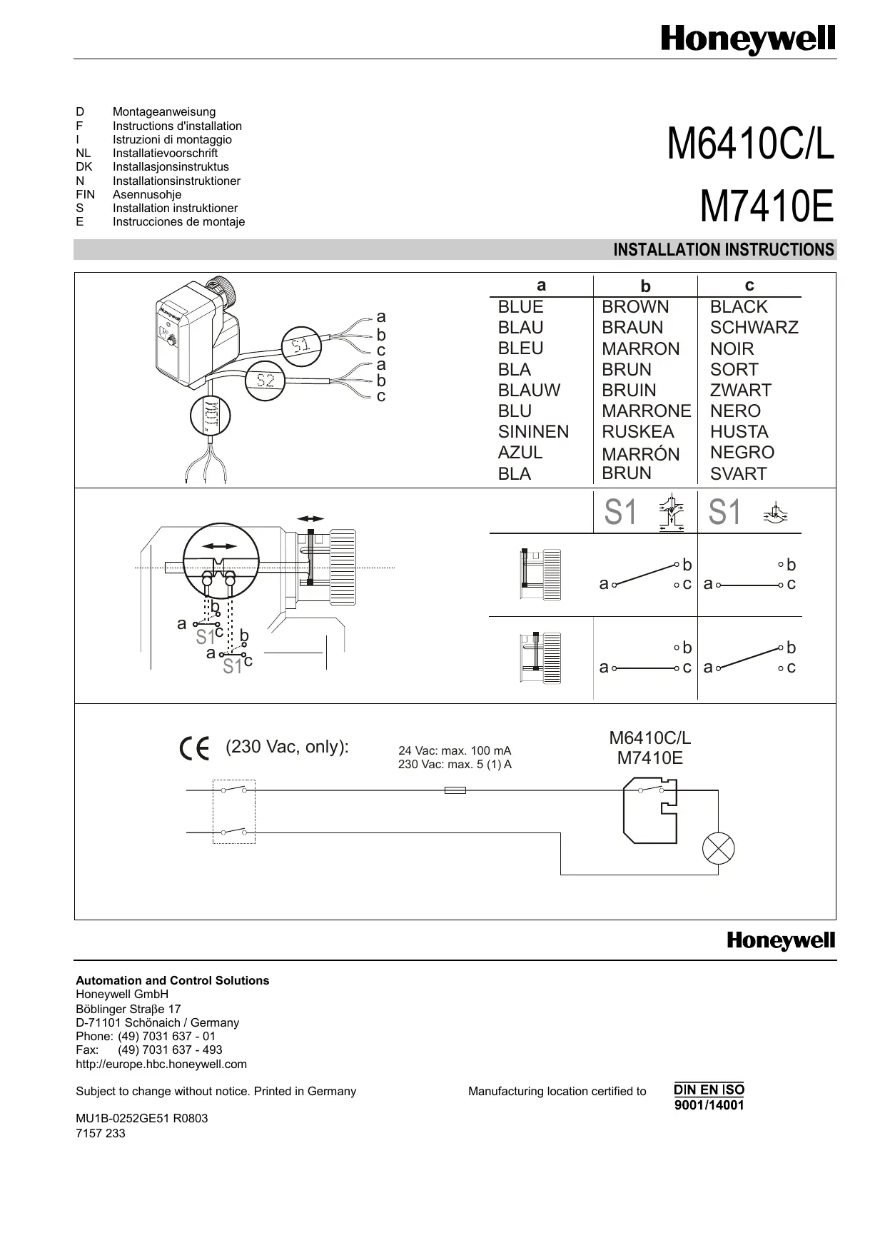 M6410C - Vanne de régulation HONEYWELL - Notice d'utilisation et mode d'emploi gratuit