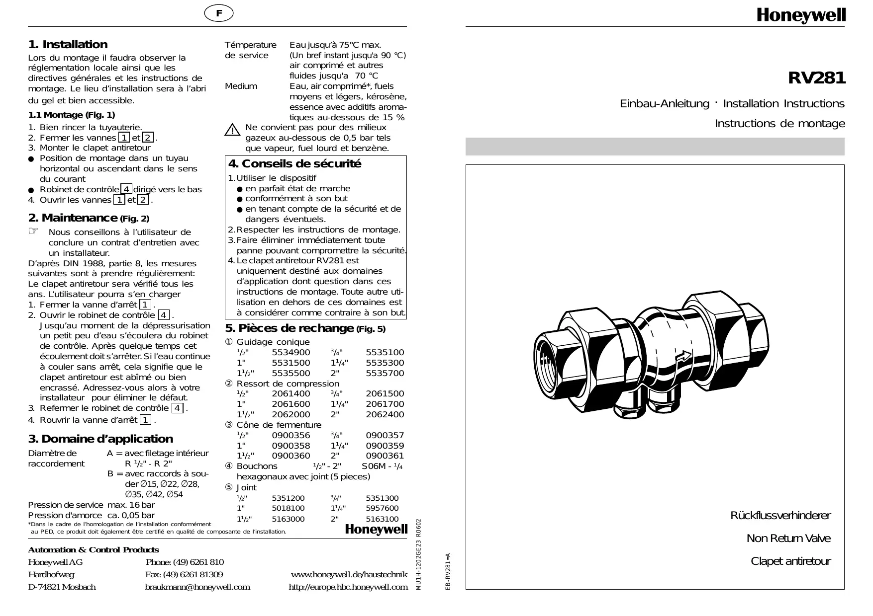 Retrouvez gratuitement la notice de l'appareil RV281 HONEYWELL au format PDF.
