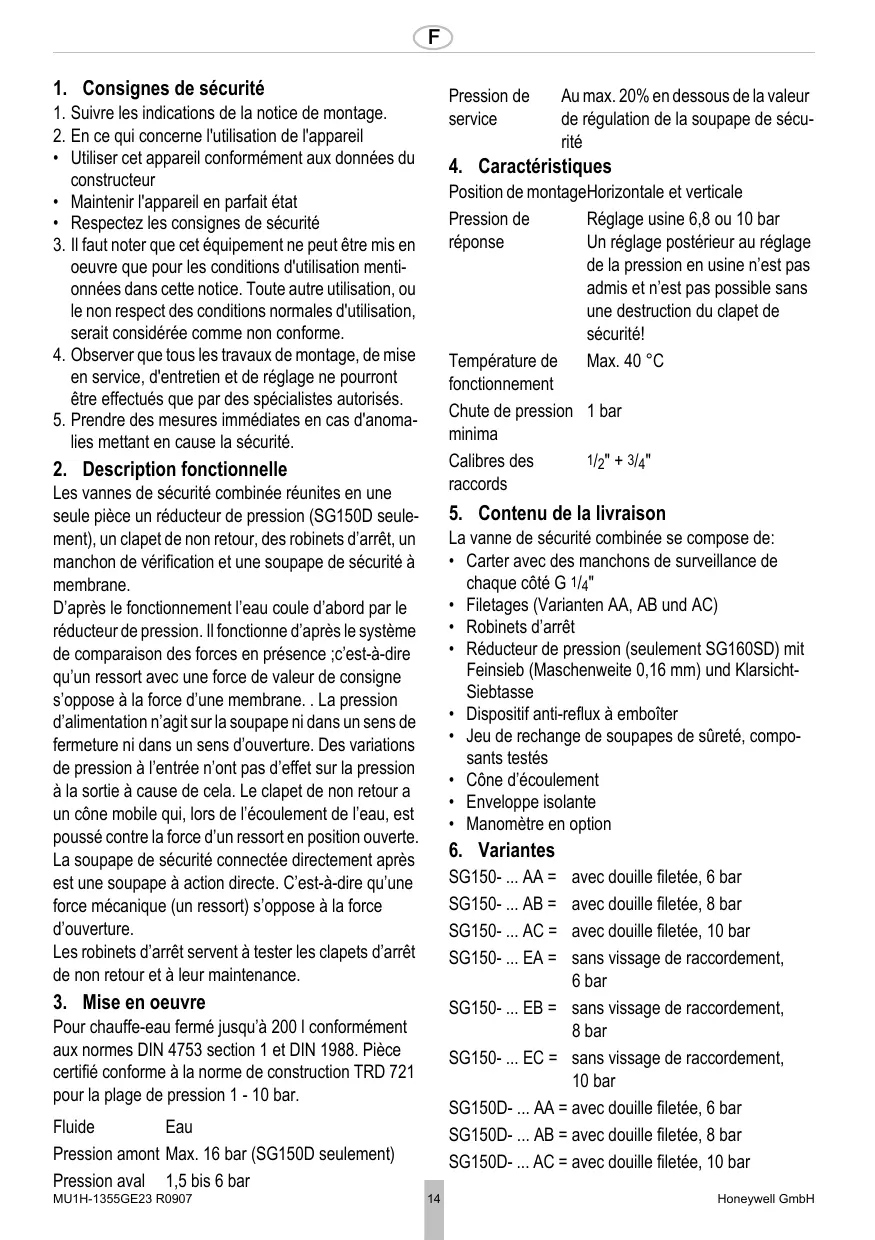 SG150D - HONEYWELL - Notice d'utilisation et mode d'emploi gratuit